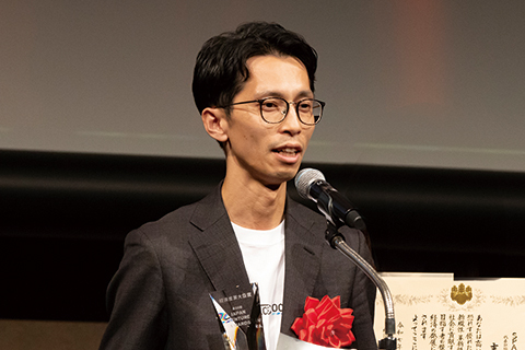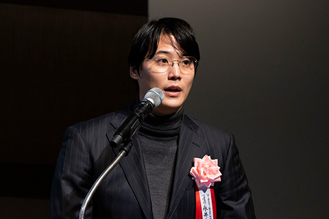 - この度は、栄えある賞をいただき誠にありがとうございます。非常に驚いております。私が現在のフィルム開発をはじめたのは2017年でした。そこから色々な方に導かれながら、ここまで成長でき感激している。この賞に恥じないよう模範となれる企業に成長していきたい。